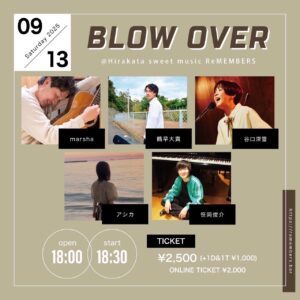 「笹岡俊介」が 大阪 枚方sweet music ReMEMBERS 「BLOW OVER」に出演します!!